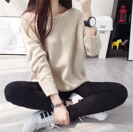 春款宽松圆领学生针织衫